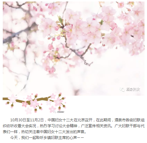 豪情满志话盛会 凝聚共识促发展——酒泉市各级妇联组织认真学习贯彻中国妇女十二大精神(乡镇篇)