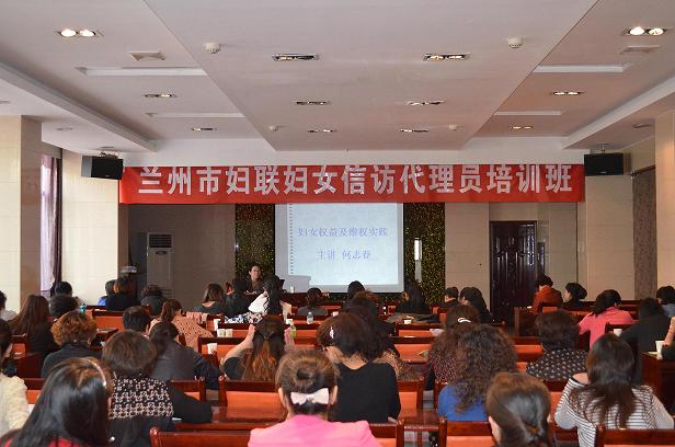 为了推进全市妇女信访代理工作,完善妇联系统信访工作机制,进一步提升全市妇女信访代理员工作水平,增强基层妇联化解社会矛盾和维护社会稳定的能力,不断提高新形势下妇联组织和妇联干部服务大局、服务妇女的能力,兰州市妇联于2013年10月11日在兰州人民饭店举办了全市妇女信访代理员培训班。参加培训的有各县区妇联的分管主席、维权干部以及基层妇女信访代理员共100人。