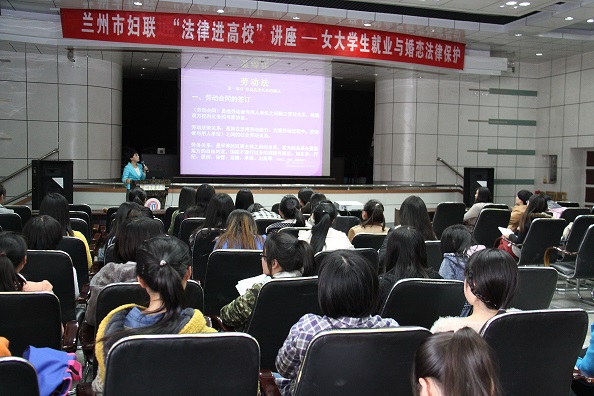 为了使广大女大学生在步入社会前掌握自我保护基本常识和技能,增进女大学生就业和婚恋保护,依法维护合法权益,3月26日,兰州市妇联与兰州交通大学招生就业处联合举办了法律进高校讲座。