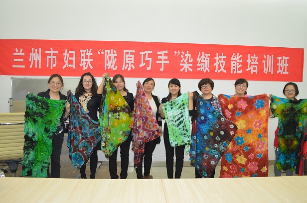 9月28日,兰州市妇联举办了“陇原巧手”染缬技能培训,市妇联副主席肖迎珺参加了培训班。此次培训邀请了兰州交通大学艺术设计学院副院长、丝绸之路染缬艺术博物馆馆长管兰生和他的团队,为来自各县区的妇联干部和城关区街道、社区妇联干部传授了染缬技能。