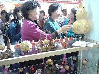 兰州市妇联组织兰州交通大学染缬艺术博物馆、惠兰工艺品制作部、兰州阮氏葫芦艺术馆参展,兰州妇女制作的三个品种近两百多件产品亮相展会。