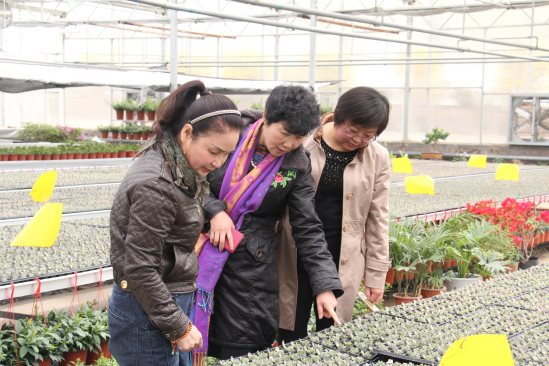 调研组一行来到兰州鑫源现代农业科技开发有限公司金砂台生态循环农业产业园基地,参观了基地设施农业示范区、优质林果展示区、智能温室博览园、花卉培育区、科普教育功能区和肉羊良种繁育区,详细了解了基地果蔬销售、种羊的繁育和生态园发展情况,并就基地推动农业产业发展促推精准扶贫情况进行了详细询问。基地董事长尹建敏介绍了基地的建设情况和经营情况。12日调研组一行来到永登县“陇原巧手”工艺品编织有限公司和甘肃润枫源农牧生态科技有限公司黄芪GAP种植基地,参观了“陇原巧手”工艺品编织公司培训室、研发室、作品展览室、网络销售室等,详细了解基地开展培训带动妇女发展情况。在润枫源农牧生态科技公司听取负责人介绍黄芪、党参、板蓝根等药材的种植、加工销售及对当地建档立卡贫困妇女的帮扶情况。