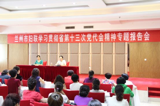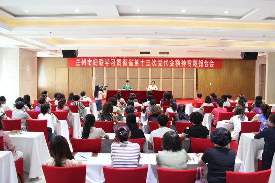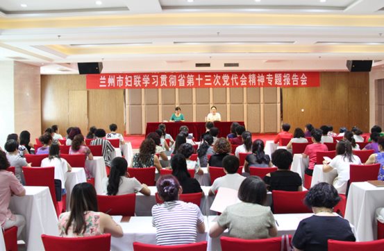为了深入学习宣传贯彻省第十三次党代会精神,引导各级妇联组织、广大妇女把思想统一到会议精神上来。7月13日,兰州市妇联在永登县举办学习贯彻省十三次党代会精神专题辅导报告会,市妇联党组书记、主席刘世英对省委林铎书记在省第十三次党代会上的报告进行详细解读。来自全县的女企业家、女经纪人等共100人参加了专题辅导报告会。