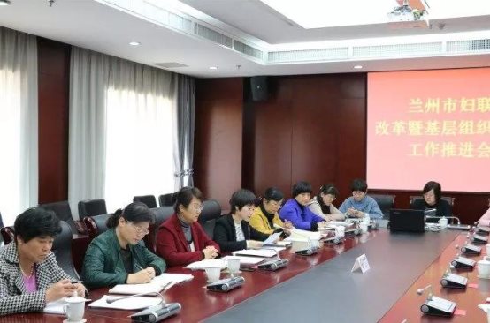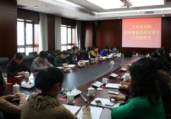 为认真贯彻落实中央和省、市委关于加强和改进党的群团工作决策部署,全面深入推进全市基层妇联组织改革工作,10月12日,兰州市妇联召开全市妇联改革暨基层组织建设工作推进会。会议传达了市委书记李荣灿关于做好全市群团改革工作的重要批示,以及省、市群团改革工作座谈会议精神,安排部署今后一个时期全市妇联改革工作。会议由市妇联党组成员、副主席周玲主持,市妇联领导班子成员、各区县妇联主席、机关全体干部及下属各单位负责同志参加了此次会议。