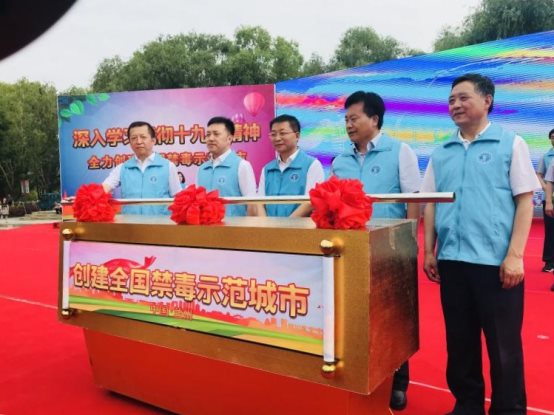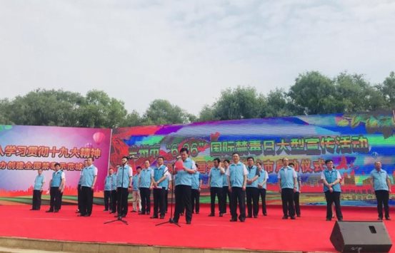 活动现场,市委副书记、市政府市长、市禁毒委主任张伟文就全市禁毒工作做了重要讲话。公安民警、禁毒专干和禁毒志愿者进行了禁毒宣誓。市妇联权益部工作人员向现场群众发放了《妇女权益保障法》《反家庭暴力法》《家庭禁毒手册》《禁毒条例》等宣传资料500余份,全方位、多角度地向广大群众积极宣传毒品的危害,用鲜活的事例告知、提醒吸食毒品带来的严重后果,警示市民群众珍爱生命、远离毒品。今年禁毒宣传的主题是“健康人生、绿色无毒”,参加活动的各位领导及在场群众还在禁毒宣传墙上进行签名承诺。通过此次宣传活动,使广大市民群众对毒品给个人、家庭和社会带来的巨大危害有了更加直观的认识。