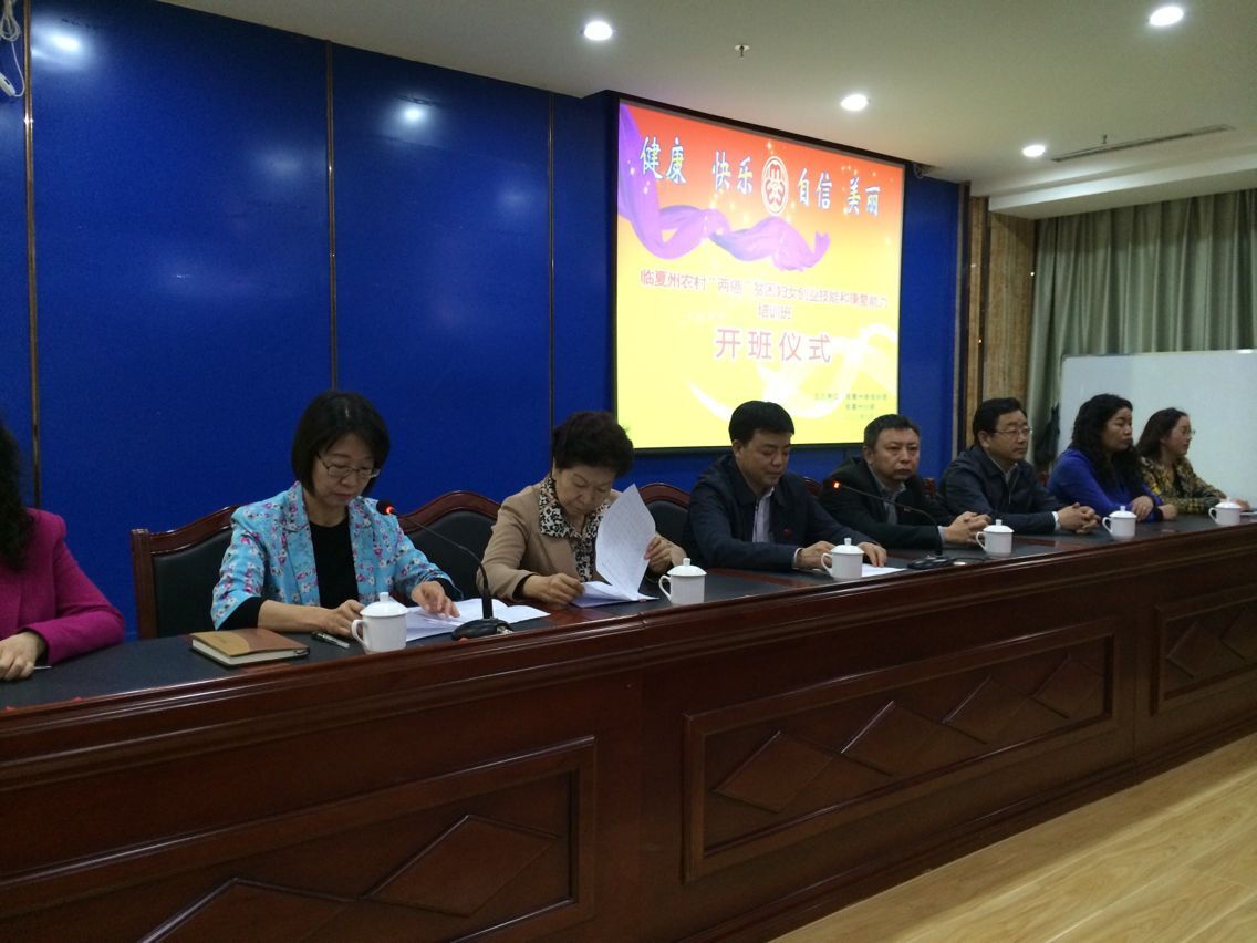 5月15日,由州委组织部和州妇联联合举办的临夏州第二期农村“两癌”贫困妇女创业技能和康复能力培训班在临夏河湟明珠国际饭店顺利开班。州委常委、组织部部长李宏亚,州委常委、州政府副州长马正坤,州人大副主任何莲香,州政协副主席沈国伟,州妇联党组书记、主席高桦等领导参加了开班仪式。
