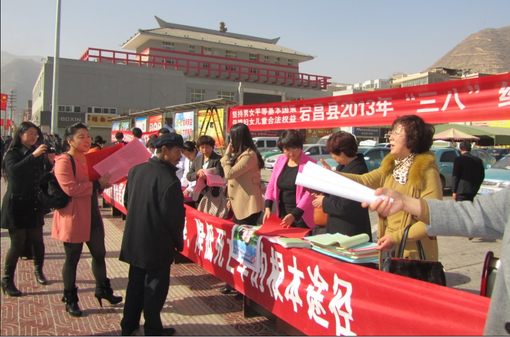 3月7日,县妇联在民生广场举行了以“坚持男女平等基本国策,保障妇女儿童合法权益”为主题的2013年“三八”维权周活动启动仪式。