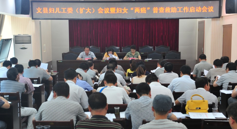 2013年7月5日,文县政府妇儿工委(扩大)会议暨妇女“两癌”普查救助工作启动会议在政府大楼八楼会议室召开。会议全面总结了2012年文县妇女儿童工作,对2013年妇儿工委工作和全县妇女“两癌”普查救助工作进行了安排部署。县四大班子分管领导出席会议,各乡镇乡镇长、妇儿工委成员单位以及妇幼站等城区医院负责人参加了会议。这次会议的召开,既是文县妇女儿童工作的部署会,也是抓好妇女“两癌”普查救助工作的一次启动会,标志着文县妇女“两癌”普查救助工作全面铺开。