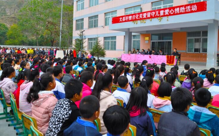 11月3日,由文县妇联牵头,联系文县轩雅日化美容院负责人张保花,在堡子坝中心小学开展关爱留守儿童爱心捐助活动。县妇联、教育等部门和堡子坝乡党委、政府相关负责人,以及堡子坝小学全体师生和学生家长参加了当日的捐赠活动。