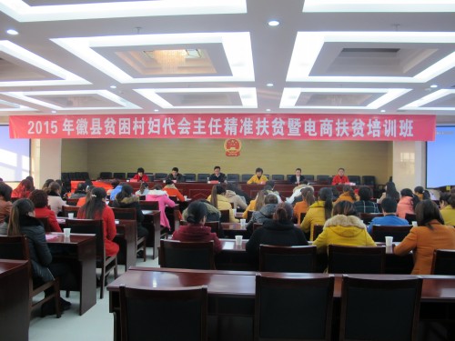 为了切实提高基层妇联组织和妇联干部围绕中心、服务大局的能力,进一步凝聚贫困村妇女推动全县精准扶贫精准脱贫行动的巾帼力量,12月1—2日,徽县妇联在政府综合楼1号会议室成功举办了“全县贫困村妇代会主任精准扶贫暨电商扶贫培训班”,来自全县88个贫困村的妇代会主任和15个乡镇妇干共计100余人参加了培训。