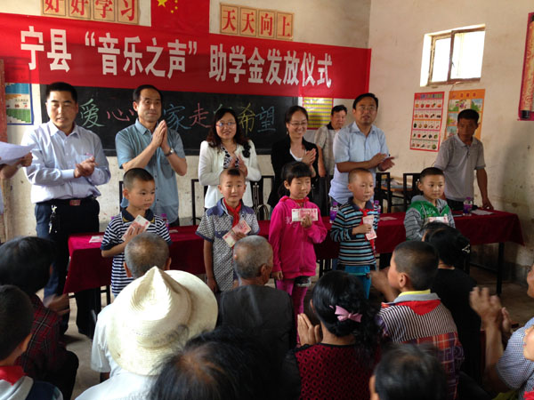 7月1日,宁县妇联在焦村镇王庄小学举行了“音乐之声”助学金发放仪式,该校的40名贫困留守儿童领到了“音乐之声”助学金。