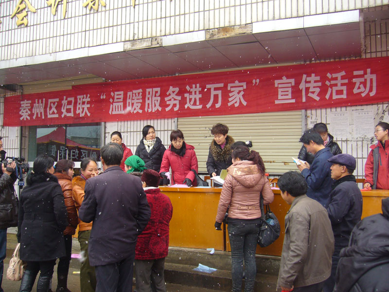 为纪念“三八”国际妇女节102周年,3月8日,秦州区妇联组织区禁毒办、区地震局、区计生服务所、区妇幼保健所等单位在娘娘坝镇开展了以“温暖服务进万家”为主题的系列宣传活动。