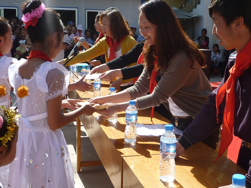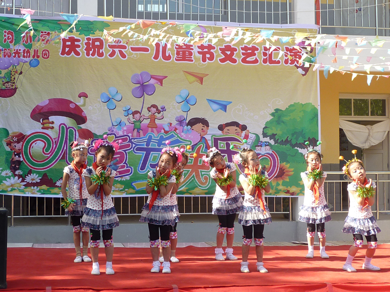 慰问活动结束后,西沟村小学的学生和阳光幼儿园的小朋友表演了舞蹈《彩虹的微笑》、武术《精忠报国》、手语舞《相亲相爱一家人》、合唱《生日快乐》、表演唱《三字经》等节目。