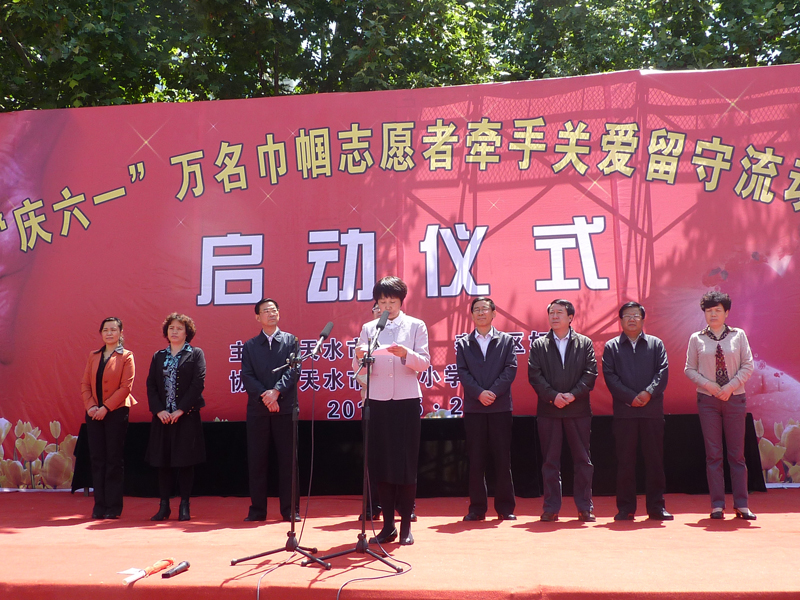 5月29日上午,天水市逸夫小学的全体师生沉浸在一片喜悦当中。由天水市妇联、秦州区妇联联合举办的“庆六一”万名巾帼志愿者牵手关爱留守流动儿童活动启动仪式在这里隆重举行。