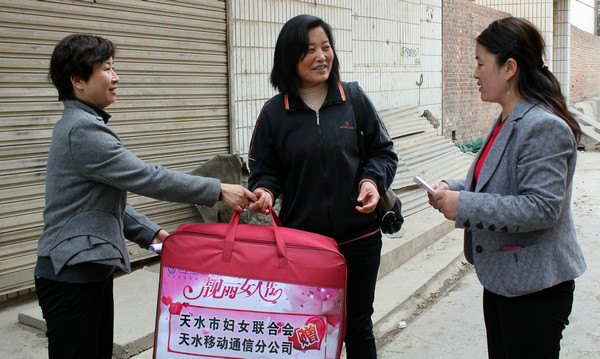 3月22日,张家川回族自治县妇联先后深入张川镇查湾村、中街居委会等走访慰问了张哈者、马小燕、王小荷等单亲特困母亲,为他们每人送去移动手机一部和棉被一床。