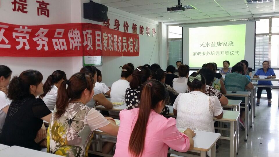 6月27日,区妇联依托益康家政培训学校举办的“秦州区2014年劳务品牌项目培训暨家政服务培训班”正式开班。市人社局、区监察局、区财政局的领导出席了开班典礼,区妇联副主席高翀霄做了动员讲话,她希望广大妇女姐妹能珍惜培训机会,认真听讲,积极思考,勤记笔记,把培训中学到的知识与实际操作结合起来,学以致用,在提高家庭收入、改善家庭面貌的同时,努力为他人服务、为社会作贡献。