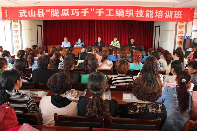 为了认真贯彻落实全省“1236”扶贫攻坚行动意见精神,切实增强我县妇女创业致富技能,拓宽妇女就业增收渠道,推动妇女灵活就业,按照省妇联《关于认真做好2015年“陇原巧手”手工编织技能培训工作的通知》要求和县委、县政府精准扶贫的工作部署,5月19日,武山县“陇原巧手”手工编织技能培训班在洛门镇开班,200余名妇女参加培训,县政府副县长唐玉芳出席培训班并讲话,县妇联主席李燕玲主持开班仪式。