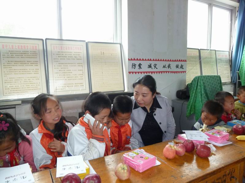 活动当天,“爱心妈妈”们为留守儿童购买了月饼、水果、学习用具等礼品,给留守儿童送去关爱和节日的祝福,大家与留守儿童进行了面对面谈心,深入了解了孩子们的生活学习思想情况,倾听了孩子们的心声,并鼓励他们好好学习。“爱心妈妈”们用自己的手机拨通了孩子们在异地的父母的电话,让孩子与远在外地的父母“团圆”,为孩子搭建了与父母沟通的桥梁。孩子们非常开心,为“爱心妈妈”们表演了诗歌朗诵、《小燕子》、《我家清水门前流》、《快乐的节日》等节目。“爱心妈妈”与留守儿童共唱《世上只有妈妈好》,教室里不时传出孩子们的阵阵欢笑……