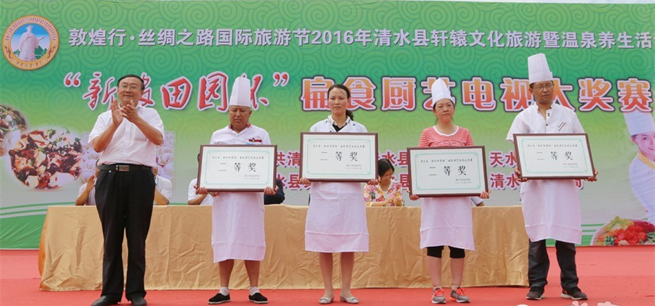 7月25日,清水县妇联、清水县文广局、清水县食药监局、清水县旅游局等单位在轩辕广场隆重举行“新侬田园杯”清水扁食厨艺电视大奖赛,为敦煌行·丝绸之路国际旅游节2016年清水县轩辕文化旅游暨温泉养生活动增添了新亮点、新魅力。