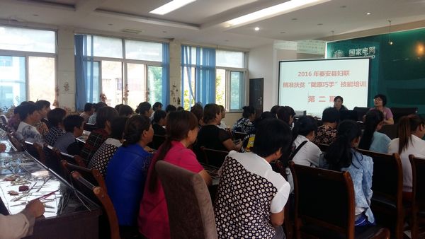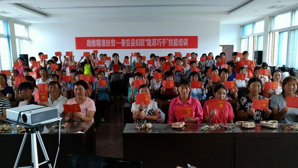 “县妇联举办的这次培训太实用了,我们活了四五十岁,从来没有住过这么高级的酒店,也没有吃过这么好的饭菜,我们不但受到了传统文化的熏陶,还掌握了一门技能,学会了坐在家里挣钱,真得感谢妇联啊!”参训学员们都争先恐后地说。7月22日至7月25日,秦安县妇联在晟瑞酒店会议室举办了两期“陇原巧手”技能培训班,共200名建档立卡贫困妇女参加了培训。
