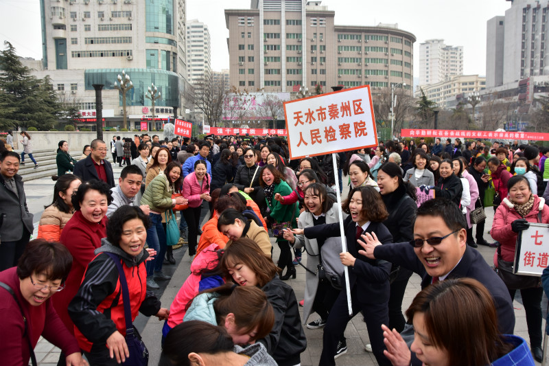 三月的秦州春风拂面,暖意融融。3月7日,为了隆重庆祝第107个“三八”国际劳动妇女节,充分展示秦州妇女的精神风貌,秦州区妇联、区总工会联合在龙城广场举办了以“强干部素质、展巾帼风采”为主题的纪念“三八”国际妇女节干部职工拔河比赛。