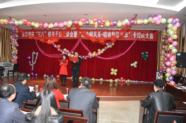 三是举办了庆“三八”干部座谈会暨“展巾帼风采·唱响和谐东华”卡拉OK大赛。3月7日,东华镇举办了庆“三八”干部座谈会暨“展巾帼风采·唱响和谐东华”卡拉OK大赛,她们用高昂美妙的歌声和对妇女工作的热情来迎接这个特殊的节日。参加活动的有机关副科级以上领导干部、全体干部职工及基层站所干部共计160余人。