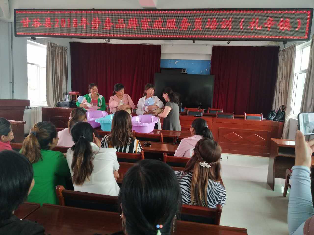 为认真贯彻落实省市妇联提出的“陇原妹走出去,陇原巧手干起来、女能人带起来”精准扶贫行动。 7月31日,甘谷县2018年劳务品牌家政服务员培训在六峰镇、磐安镇、八里湾镇、礼辛镇同时开班。