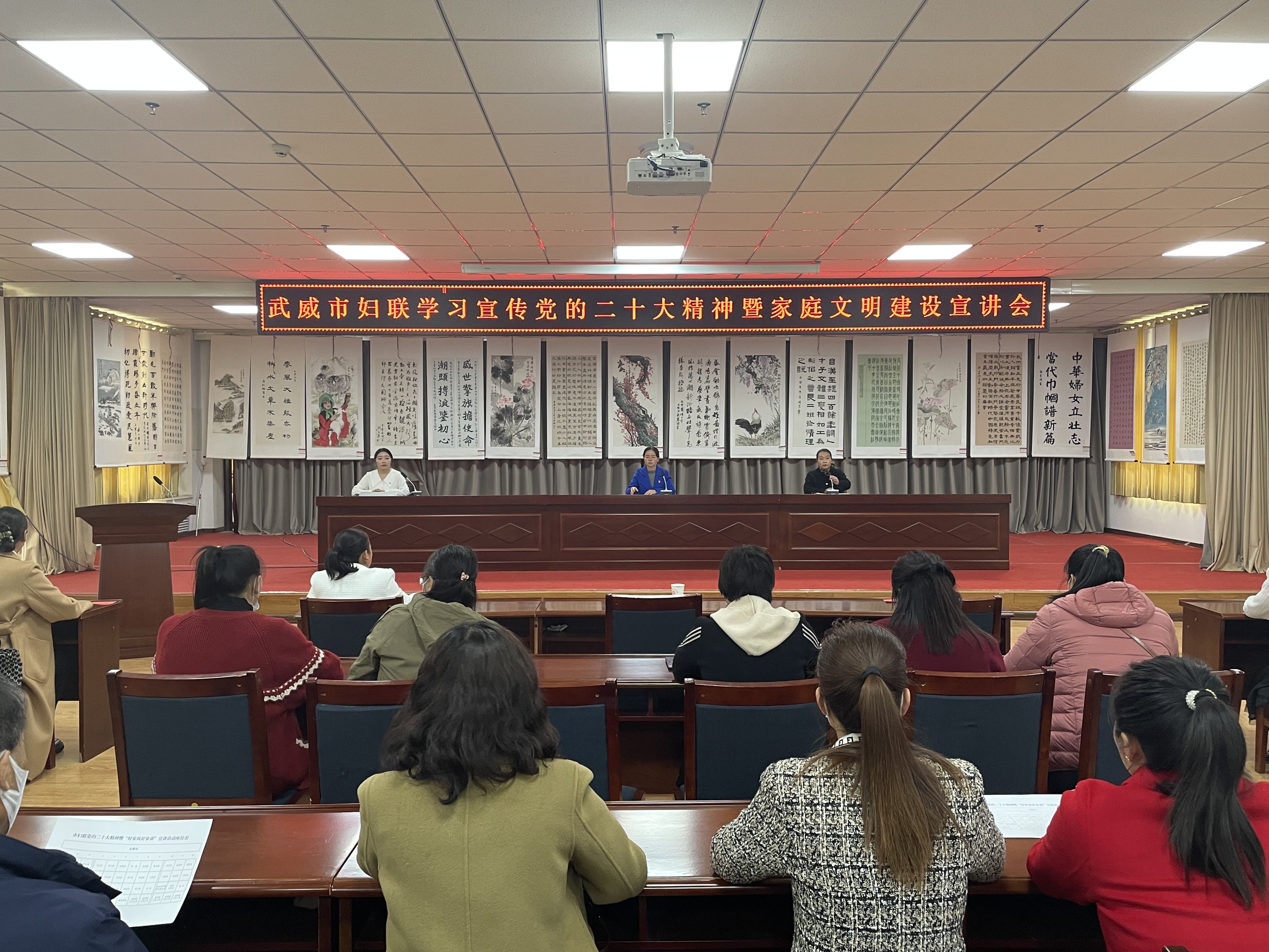 为深入学习宣传党的二十大精神,做深做实做好新时代“家”字文章,动员广大妇女和家庭积极参与家庭文明建设,使千千万万个家庭成为国家发展、民族进步、社会和谐的重要基点。3月21日,武威市妇联在古浪县开展学习宣传党的二十大精神暨家庭文明建设宣讲活动。“好家风好家训”获奖家庭代表、妇女群众代表等50余人参加了活动。