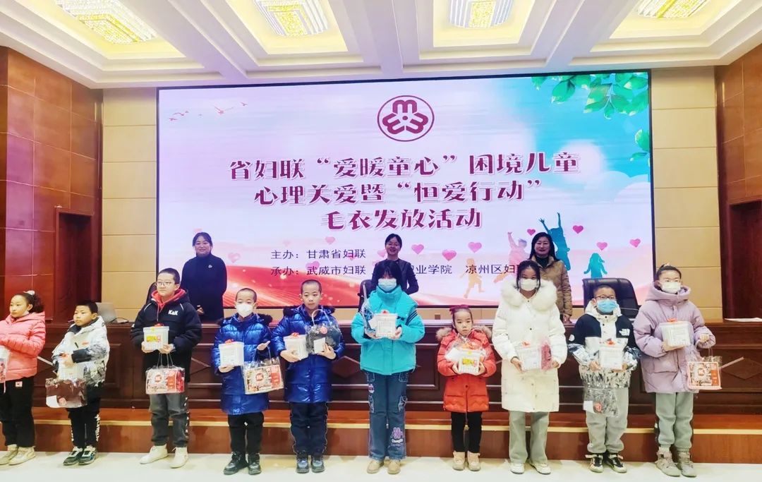 为深入贯彻落实习近平总书记同全国妇联新一届领导班子成员集体谈话时的重要讲话精神,持续推动“结对帮扶·爱心甘肃”工程建设,深入开展“陇原巾帼关爱行”活动,进一步做好留守儿童、困境儿童帮扶关爱工作,1月18日,受省妇联委托,武威市妇联联合凉州区妇联举行“爱暖童心”困境儿童心理关爱暨“恒爱行动”毛衣发放仪式。