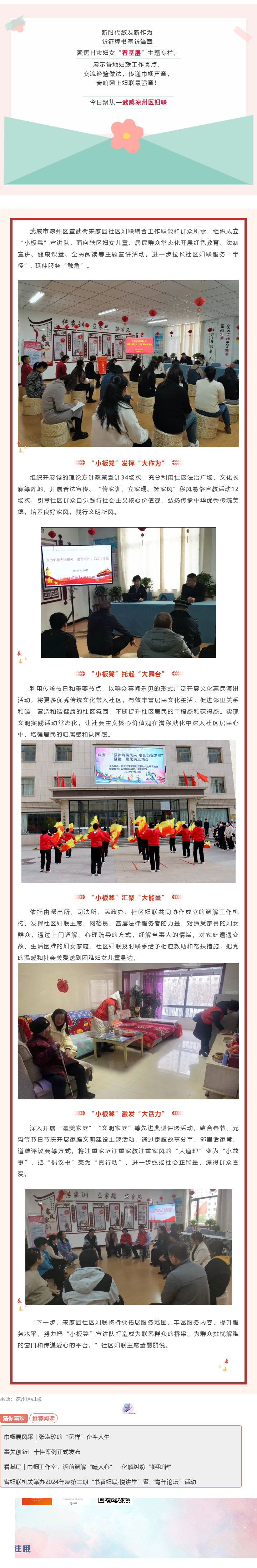 看基层 | 凉州区宣武街宋家园社区妇联“小板凳”宣讲队发挥大作用