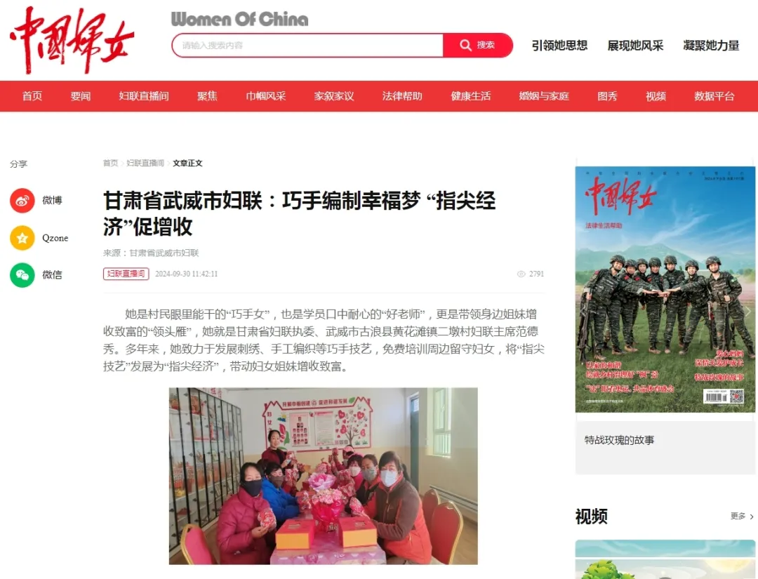 她是村民眼里能干的“巧手女”,也是学员口中耐心的“好老师”,更是带领身边姐妹增收致富的“领头雁”,她就是甘肃省妇联执委、武威市古浪县黄花滩镇二墩村妇联主席范德秀。多年来,她致力于发展刺绣、手工编织等巧手技艺,免费培训周边留守妇女,将“指尖技艺”发展为“指尖经济”,带动妇女姐妹增收致富。