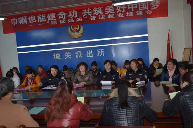 近年来,随着农村孩子进城读书,民勤县城产生了一支庞大的陪读妈妈队伍,为帮助这些陪读妈妈们早日融入城市生活,减轻家庭经济负担,掌握创业就业技能和依法维权常识,民勤县妇联联合县城关派出所举办了“巾帼也能建奇功,共建美好中国梦”为主题的“陪读妈妈”普法就业培训班。