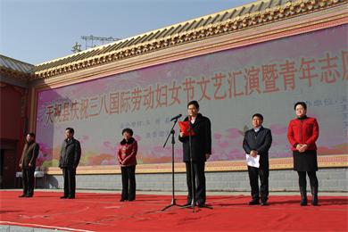 曹文跃在活动上讲话。他希望各级妇联组织面对经济发展新常态,要围绕中心,服务大局,深入研究新形势下妇女工作的特点和规律,找准工作的切入点和着力点,以改革创新的精神推动社会各项事业健康发展。全县广大妇女要认真践行社会主义核心价值观,充分发挥自身优势,扎实做好服务基层、服务妇女、服务群众工作,积极投身到经济建设、民生改善、扶贫开发等工作中,为全县经济社会发展做出应有的贡献。也希望社会各界一如既往地关心支持妇联工作,共同营造良好的社会氛围。
