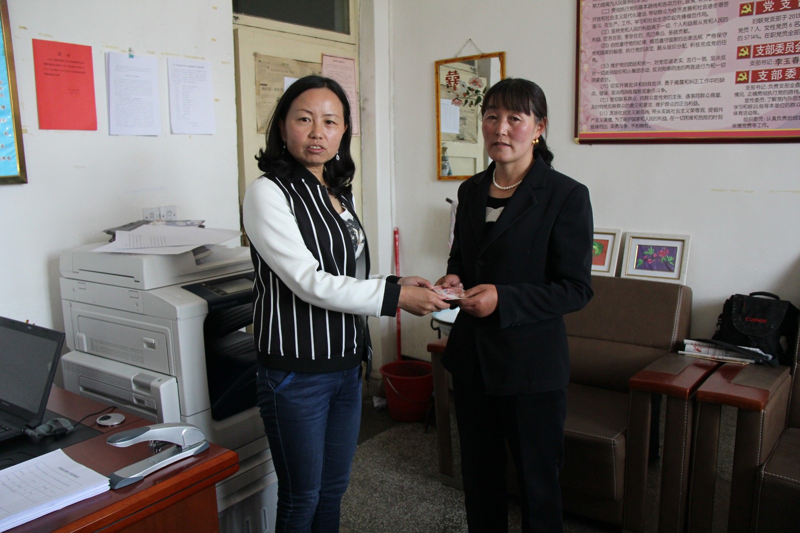 在单位为贫困妇女发放救助金