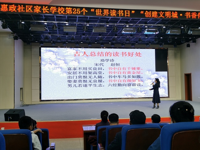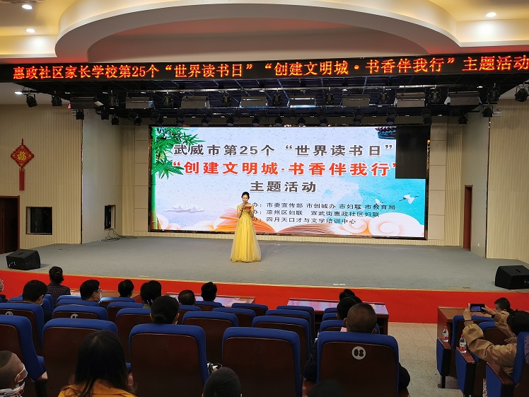 为深入贯彻落实习近平总书记关于建设“书香社会”的重要指示精神,深入推进“书香武威”全民阅读活动,助力创建全国文明城市,在第25个“世界读书日”,全市69个城市社区家长学校同步开展“创建文明城·书香伴我行”主题活动。