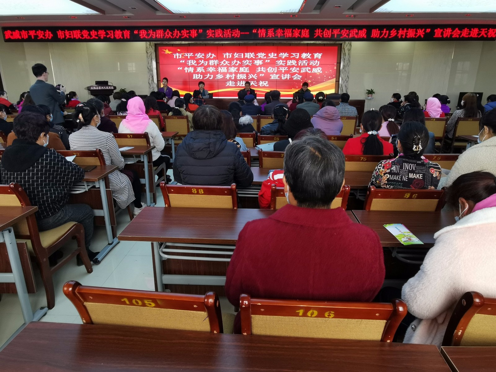 按照党史学习教育任务要求,扎实开展“我为群众办实事”实践活动,有效预防和及时调处婚姻家庭纠纷,构建和睦有爱、平安幸福的良好家庭关系,维护社会和谐稳定,助力乡村振兴。4月13日,武威市平安办、市妇联开展党史学习教育“我为群众办实事”实践活动——“情系幸福家庭 共创平安武威 助力乡村振兴”宣讲会走进天祝县、古浪县。