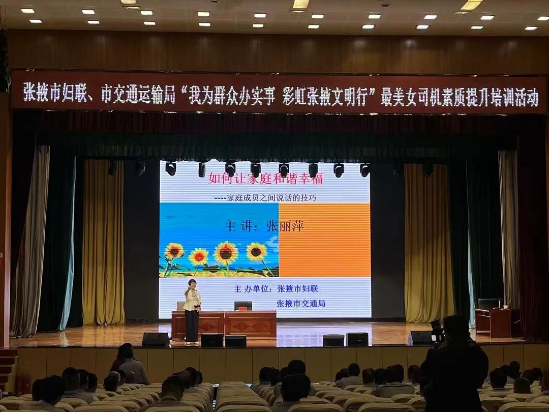专业培训提升素质,争做最美女司机。市妇联、市创城办、市交通运输局邀请文明行车规范、服务礼仪、文明创城、家庭家教家风等方面专长的老师,组建市级培训宣讲团,赴六县区开展集中引领示范性培训6场次,受益人数700多人。各县区积极跟进,灵活设定培训时间和地点,广泛组织女驾驶员开展素质提升培训,使广大出租车女驾驶员的个人素质和综合服务水平得到较大提升。甘州区妇联、高台县妇联通过线上展示和投票,引领带动广大出租车驾驶员学典型、争先进、创文明,打造出租车行业靓丽品牌。