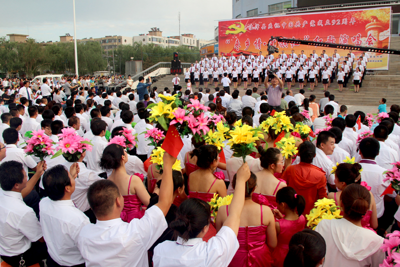 近日,临泽县委宣传部、县直机关工委、县文广新局、县妇联在县文化体育广场举办庆祝中国共产党建党92周年“枣乡情﹒党旗红”红歌演唱会,来自全县15支代表队的1500多名党员干部,用一首首经典的红色歌曲,尽情抒发了对党和祖国的无限热爱之情,表达了对加快临泽转型跨越发展、建设美好家园的豪情和决心。县上领导与数千名城乡群众一起聆听了演唱会。