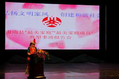 最美夫妻和美家庭代表康乐乡牧民兰文明,7年来,他全心全意照料着瘫痪的妻子,不离不弃见真情。最美孝老爱亲家庭代表马蹄乡陈红英家庭,家中四世同堂,常年照顾双目失明,行动不能自理的大伯,用行动书写对家人的大爱。最美持家有道家庭代表明花乡杨海蓉,她坚强自立,踏踏实实、一步一个脚印,将原本贫困的家庭经营的红红火火。报告中,代表们用朴素的语言、真挚的情感分别讲述了平凡感人的家庭故事,令人感动、给人启发,让在场的每一位听众都为之动容,深受鼓舞。