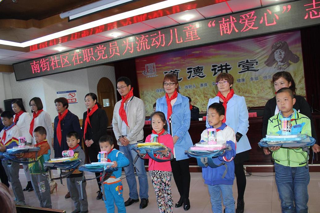 为深入贯彻落实党的十八大和十八届三中、四中全会精神,巩固和发展党的群众路线教育实践活动成果,建立党员带头做志愿者活动机制,引导广大党员在服务社会、服务群众中更好地发挥先锋模范作用,5月29日,在六一儿童节来临之际,民乐县妇联、团委、国税局、工商银行等单位30名党员干部赴南街社区开展在职党员关爱流动儿童志愿服务活动。