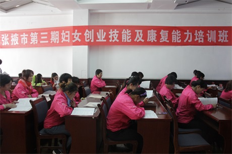 9月22日,由张掖市委组织部和市妇联联合举办的全市第三期贫困妇女创业技能和康复能力培训班开班。全市36名贫困妇女参加了培训。