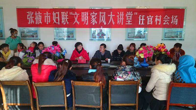 为认真贯彻习近平总书记“注重家庭、注重家教、注重家风”的新要求,传扬文明家风,深化和谐家庭创建,弘扬社会主义核心价值观,以文明家风促民风转社风,12月21一26日,张掖市妇联“文明家风大讲堂”在六县区126个村(社区)分别开讲,受到的城乡群众的广泛欢迎。