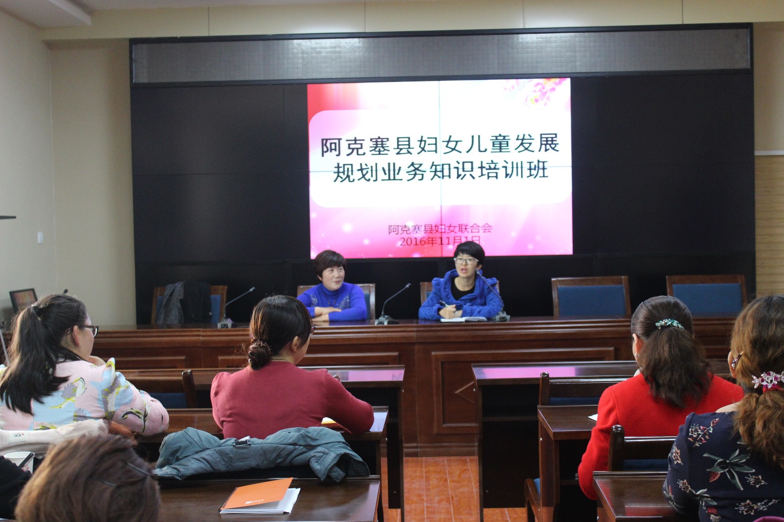 近日,阿克塞县妇联在安监局会议室举办2016年度“两规划”业务知识暨普法维权培训班,培训班为期半天,38名“两规划”联络员及乡镇妇联负责人、社区妇干参加培训。