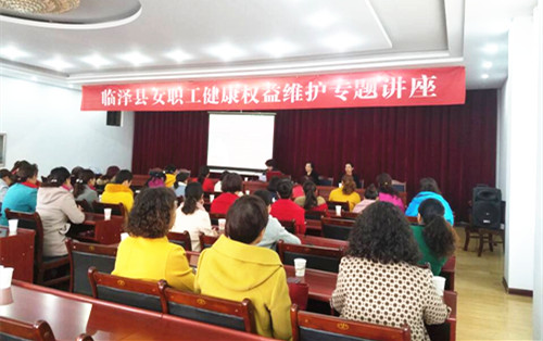 为深入实施女干部职工“关爱行动”,进一步提高广大妇女干部职工健康意识和自我保健能力,近日,临泽县妇联、县总工会联合举办了两场次女职工健康权益维护专题讲座,机关、企事业单位妇女干部、职工近200人参加活动。