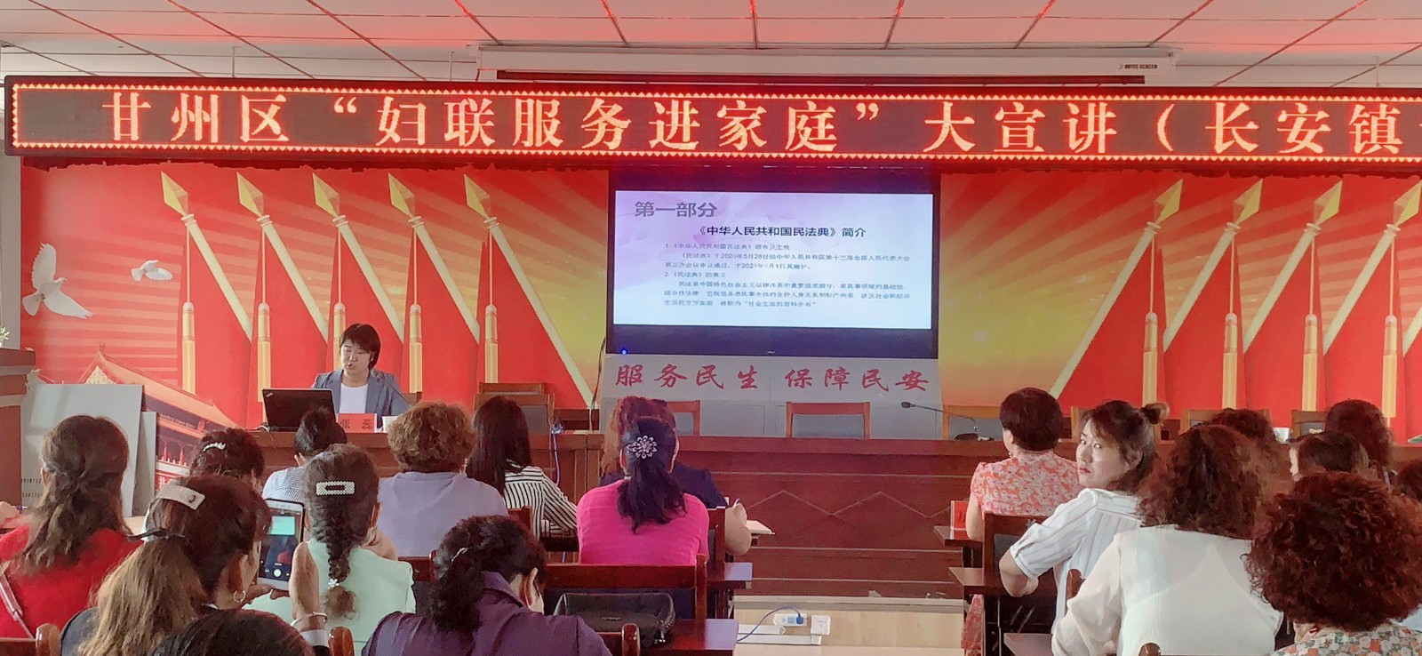 8月12日上午,由甘州区妇联组织开展的“妇联服务进家庭”大宣讲活动走进长安镇。镇机关妇女干部、各村妇联主席、副主席、执委委员、妇女群众代表共计140余人参加了宣讲活动。