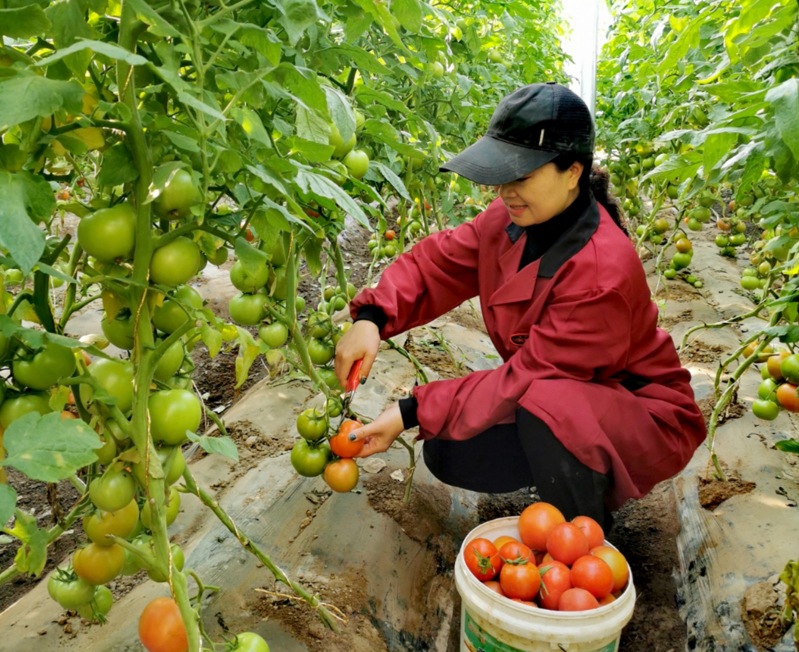 在汪家堡村妇联主席武雅琴经营的日光温室里,她向我们介绍道:这是依托区委一号文件精神新建的下挖式新型日光温室,每座占地面积5.5亩,栽植菜苗5000株,今年8月底栽种,目前已经开始收获。现在市场价每公斤1.7元-2元不等,她们的销售渠道也是多样化的,有定点收购、部分商家上门收购,还有一部分种植户为了卖到更高的价格就到嘉信或者嘉禾菜市场售卖,预计产量在22吨-25吨之间,收入在5万元左右。小小西红柿成了致富的“金蛋蛋”,加速了她们增收致富的步伐。
