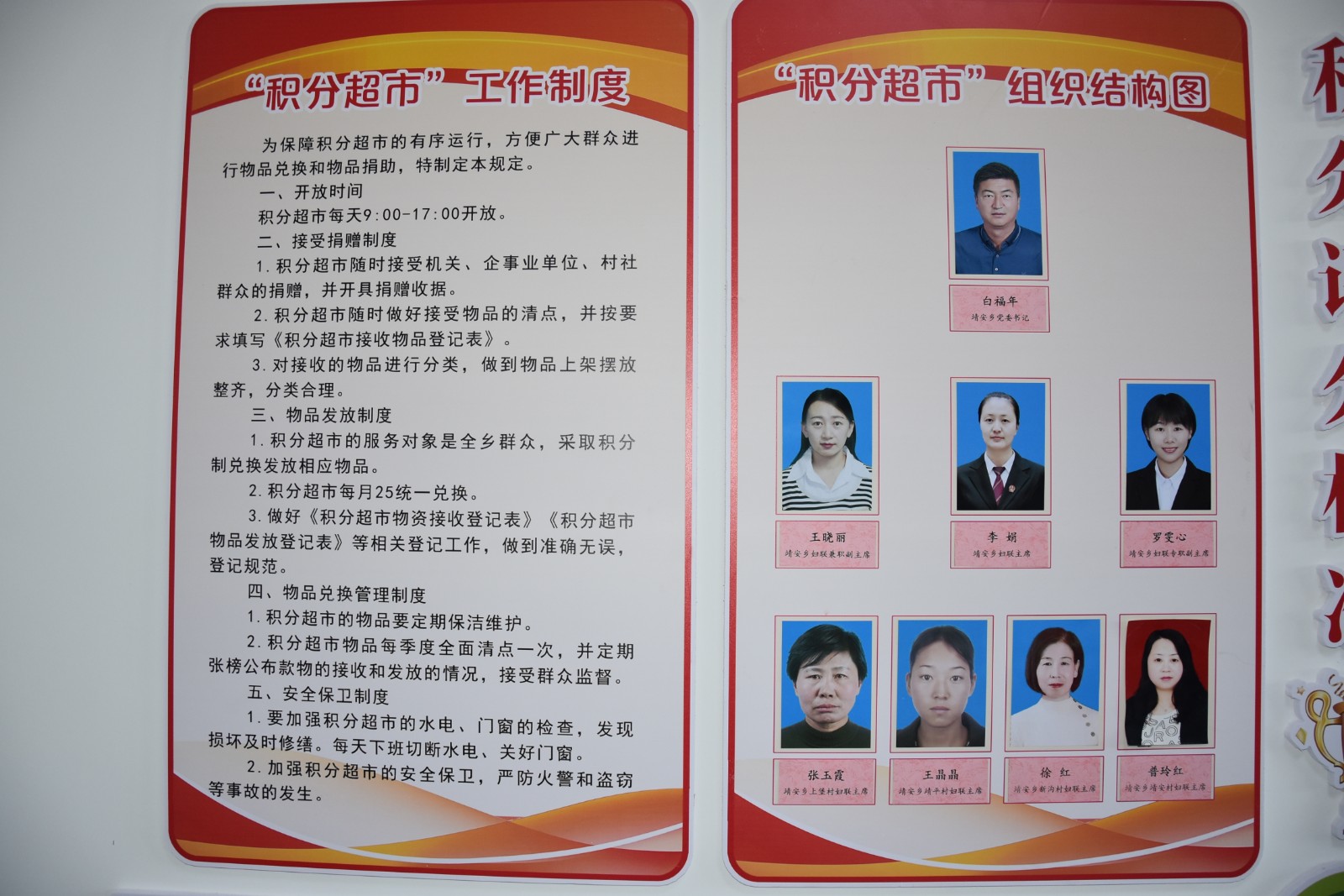 “巾帼佳美积分超市的建成大大的推动了妇女同志参加村上事务的积极性,尤其对环境卫生治理及村容村貌的改善起到了很大的激励作用,平时开展的母亲讲堂、志愿者活动、劳务技能培训都给积分,积了分可以兑换洗衣液、洗洁精、电饭锅等东西,大家参加的积极性特别高,”靖平村妇联主席王晶晶感叹地说道。