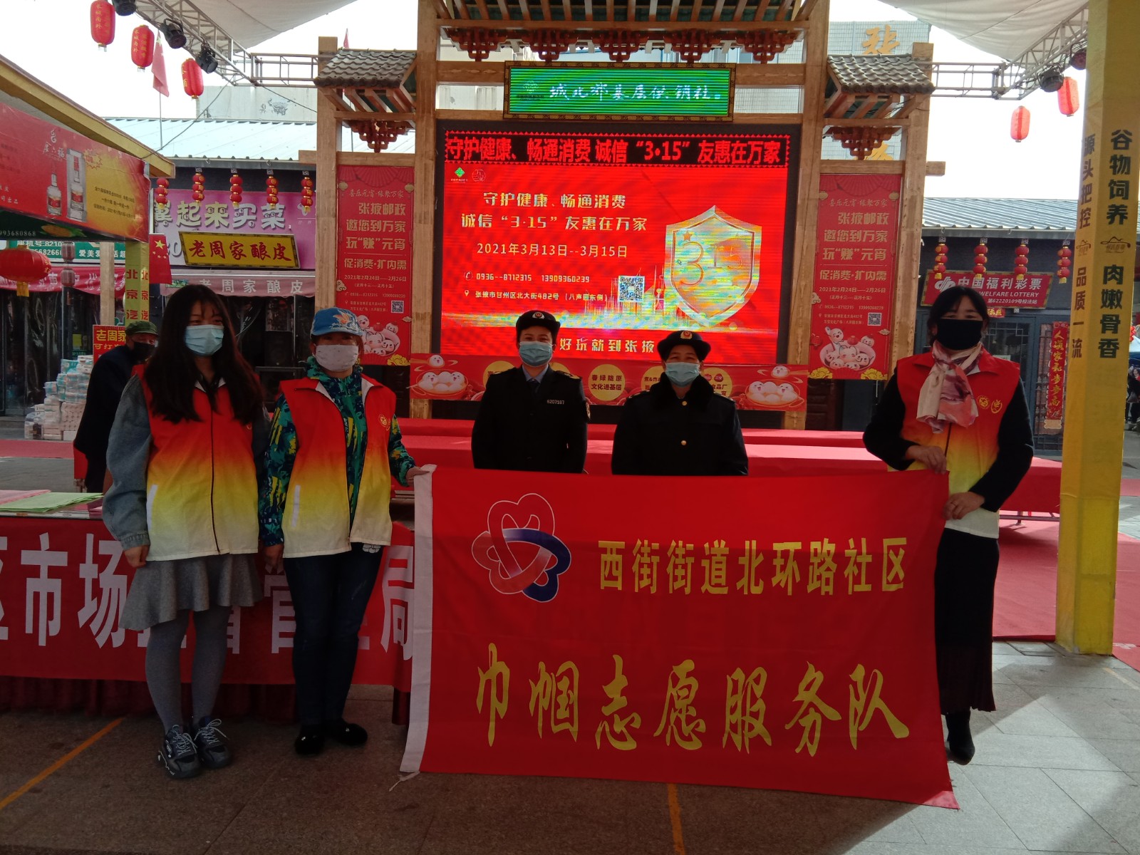 3月15日,北环路社区妇联联合西街市场监督管理综合行政执法队在万家便民市场开展以“守护安全 畅通消费”为主题的宣传活动,本次活动,居民共咨询关于消费问题60余次,发放消费维权常识等宣传资料200余份。