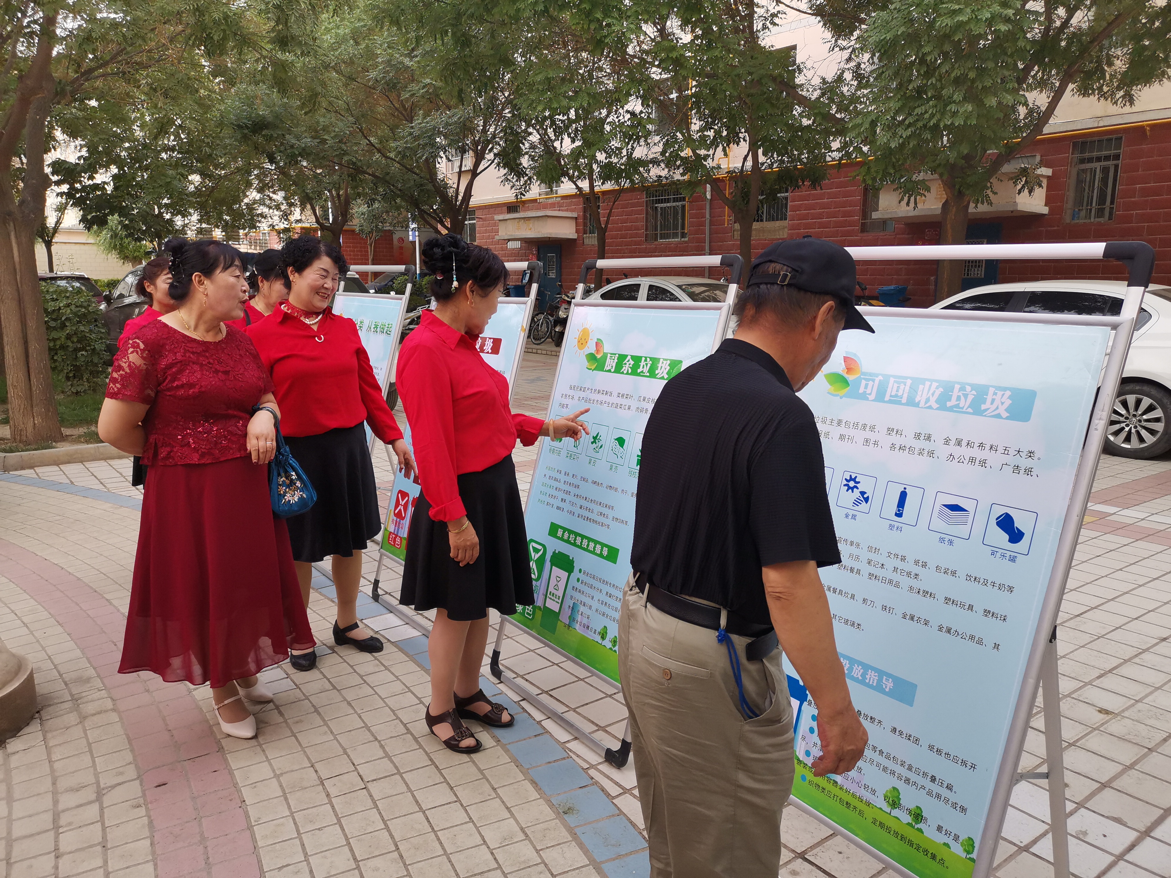 在泰安嘉园小区,巾帼志愿者向居民们发放了垃圾分类宣传册、宣传品以及四色垃圾桶、垃圾袋,并通过展板的形式,详细向居民讲解了垃圾的具体分类方法,呼吁大家一起参与到垃圾分类队伍中。居民王大爷表示:“现在的小区环境真是大变样,整体环境越来越好,我们生活的很舒心。保护环境是每一个人的责任与义务,开展垃圾分类我们必须积极支持和响应,我们要带动家人一起参与到垃圾分类的行动中来。”