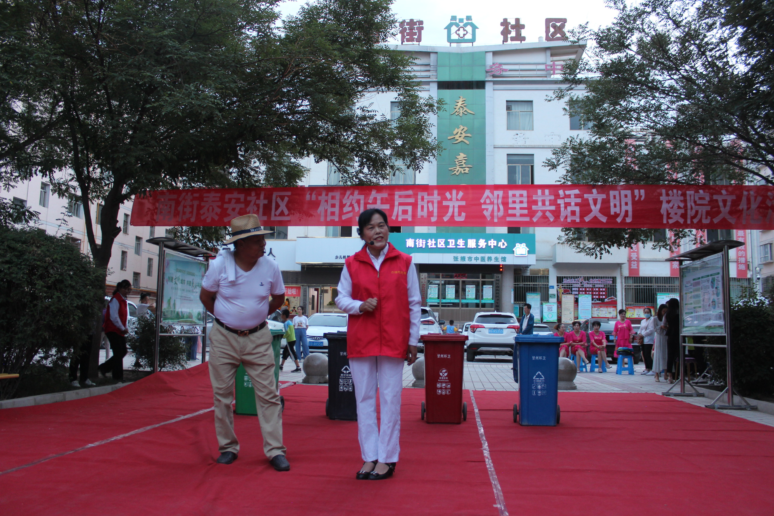 文艺汇演乐民,争创文明城市的引领者。积极营造孝老爱亲家庭环境,以明理贤德教育子女,以诚信友善融洽邻里,以小家温馨促大家和谐。组织巾帼志愿者、社会组织围绕“我为创建做贡献”积极编排群众喜闻乐见的文艺节目,小品《百善孝为先》、快板--《垃圾分类树新风》、《夸张掖》,情景剧--《创建文明城市我先行》等节目,让居民在楼院共享文化“大餐”同时宣传文明创建工作,做到家喻户晓、人人皆知,努力营造“做文明人、创文明城”的浓厚氛围。
